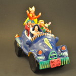The Holy Family is often depicted on a journey. Sometimes they are shown walking.Often Mary is seated on a donkey and sometimes on a camel. There are depictions of the Holy Family in a boat. This version puts the Holy Family and the three Magi in a vintage car. They all seem to be having a fantastic time as they appear to be on a true joy ride.
